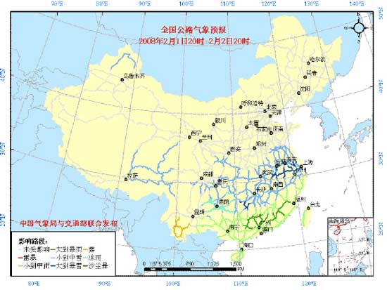 全國公路氣象預(yù)報(bào)(2008年2月1日20時(shí)-2月2日20時(shí))