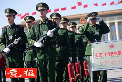 昨天,天安門消防執(zhí)勤隊正式上崗,他們將負責(zé)天安門廣場以后所有重大節(jié)日和活動的執(zhí)勤保衛(wèi)任務(wù)。