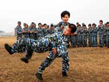 美國(guó)海軍太平洋艦隊(duì)司令拉夫黑德上將第一次到中國(guó)海軍陸戰(zhàn)旅訪問,想看看女子陸戰(zhàn)隊(duì)員的真功夫。