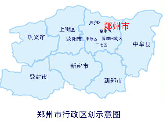 【區(qū)劃】轄區(qū)6個(gè)、縣級(jí)市5個(gè)、縣1個(gè)。分別是:中原區(qū)、二七區(qū)、金水區(qū)、管城回族區(qū)、惠濟(jì)區(qū)、上街區(qū)、滎陽(yáng)市、鞏義市、登封市、新密市、新鄭市、中牟縣