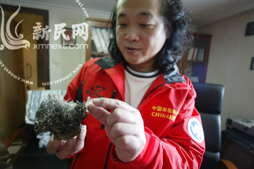 "雪龍?zhí)?抵達上海 科考隊員展示"南極地衣"(圖)