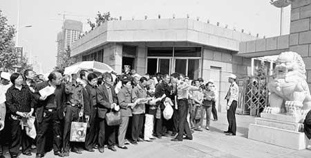 與兩年前一樣,昨天早上7時(shí),記者在現(xiàn)場(chǎng)看到,省法院大門口向西,來(lái)訪群眾已自覺(jué)排起了200多米的長(zhǎng)隊(duì),手里都拿著一份份文書(shū)材料!拔以诜ㄔ洪T口呆了一夜,掂著早餐也吃不下去!64歲的范淑珍提著行李和早餐站在門口。為了早點(diǎn)見(jiàn)到省法院的領(lǐng)導(dǎo),4日上午,她就從鞏義來(lái)到鄭州,早早在省法院門口排隊(duì)。新鄉(xiāng)的郭秀香也是提前一天來(lái)鄭州,排了一晚上隊(duì)。
