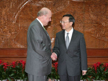 楊潔篪說,在雙方共同努力下,中美關(guān)系近年來取得長足發(fā)展。兩國高層和其他各級別交往密切,各領(lǐng)域交流合作不斷深入。今年對中美關(guān)系是極為重要的一年,保持兩國關(guān)系穩(wěn)定發(fā)展符合雙方共同利益。希望美方與中方一道,堅持從戰(zhàn)略高度和長遠角度把握兩國關(guān)系大方向,繼續(xù)認真落實兩國元首達成的重要共識,加強對話交流,增進互信合作,妥善處理臺灣、涉藏等敏感問題,排除干擾,推動中美建設(shè)性合作關(guān)系持續(xù)穩(wěn)定發(fā)展。