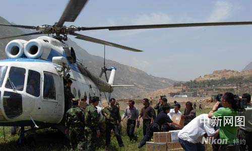 中新網(wǎng)隴南5月14日電(張晟福 侯志雄)記者在隴南現(xiàn)場報(bào)道,5月14日蘭州軍區(qū)空軍某部第一次空投直升機(jī)于11點(diǎn)28分出現(xiàn)在甘肅省隴南市武都區(qū)上空,11時(shí)35分安全降落。