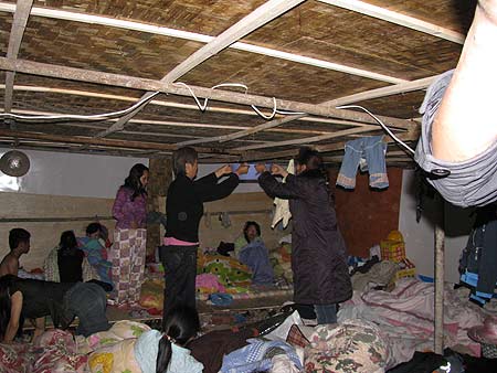 凌晨?jī)牲c(diǎn)鐘,記者冒雨到各受災(zāi)群眾和游客臨時(shí)防震棚采訪,90%的防震棚在漏雨。在游客防震棚內(nèi),記者看到,許多人被淋醒,抱著衣服擠到不漏雨的地方,冷得直發(fā)抖,小孩哭叫不已。許多女游客本就驚魂未定又遭雨災(zāi),傷心地哭泣起來(lái)。她們哭著說(shuō),我們想親人、想回家。她們需要防雨設(shè)施,需要藥品、食物和水!