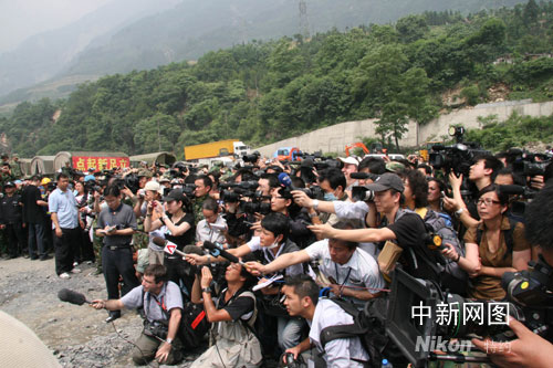 快訊:中國總理溫家寶在映秀接受中外記者采訪