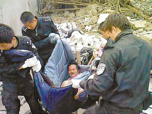 中新網(wǎng)5月25日電 據(jù)中央電視臺報道,23日下午4點左右,上海赴川救援特警在綿竹市廣濟鎮(zhèn)較為偏僻的中心村,發(fā)現(xiàn)了一名老人被壓在倒塌的房屋廢墟里。隊員們迅速組織附近三十名警力共同展開施救,冒著危險徒手搬去沉重的橫梁、瓦礫,終于成功解救了老人。這距離地震發(fā)生已經(jīng)將近266個小時了。