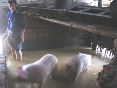 柳元松還顯得有些感激地對記者說,當日凌晨3時,他的養(yǎng)豬場的積水就達到了1.5米深,導(dǎo)致這批快要上市的“出欄豬”有的在豬舍中嗷嗷叫,有的被水沖出了豬舍。面對這一緊急情況,他的10多位會水的男姓鄰居不顧自家被洪水浸泡,紛紛從各自的家中跑出來,游到豬舍中或洪水中去營救將要淹死的生豬。尤其讓他感動的是,因鄰居家的一樓都被洪水浸泡,有幾位男姓鄰居還將從洪水救起的生豬直推趕到自家的二樓,以防被淹生豬再次受寒。