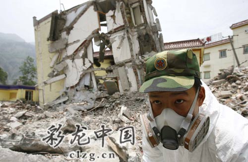 中午12時(shí)左右,在鎮(zhèn)中心附近,尖銳刺耳的哨聲,一聲驚天動(dòng)地的巨響過(guò)后,巨大煙霧騰空而起——這是解放軍駐重慶某部隊(duì)對(duì)一棟居民樓進(jìn)行定向爆破,隨后,身著防化服的戰(zhàn)士進(jìn)入,進(jìn)行遺體清運(yùn)和廢墟清理。連日來(lái),解放軍戰(zhàn)士對(duì)全縣城的街道和土壤一直在進(jìn)行消毒,進(jìn)出車輛也要噴灑藥水,將發(fā)生疫情的可能性降到最低。