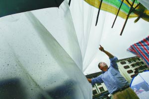 同樣是月圓村災(zāi)民的肖蘭杰就更頭疼,因?yàn)榧依锏膸づ駨氐姿,雖然經(jīng)濟(jì)條件不錯(cuò)的他買的是市面上最好的帳篷布。昨日12時(shí),在救災(zāi)官兵的幫助下重新搭篷的肖蘭杰對(duì)記者感慨,“要是繼續(xù)這么下雨,帳篷還得塌”。