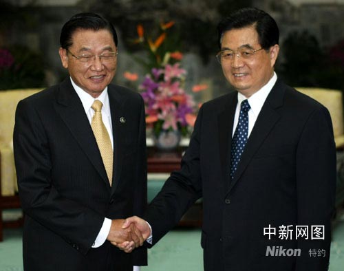 中共中央總書記胡錦濤會(huì)見(jiàn)江丙坤一行。中新社記者 任晨鳴 攝