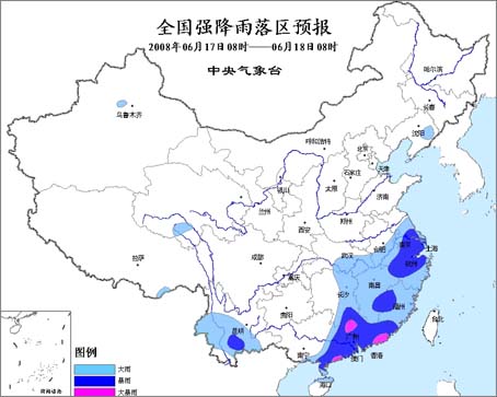中新網(wǎng)6月17日電 據(jù)問(wèn)天網(wǎng)消息,中央氣象臺(tái)今天早晨六點(diǎn)鐘繼續(xù)發(fā)布暴雨預(yù)報(bào):