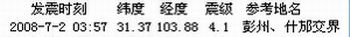 據(jù)四川防震減災(zāi)網(wǎng)顯示,今(2)日03時(shí)57分,四川彭州、什邡交界(31.37 103.88)發(fā)生4.1級(jí)余震。