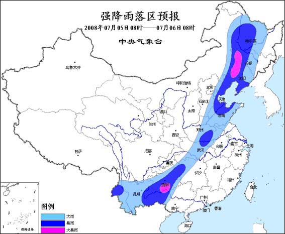 預(yù)計今天白天到夜間,云南東部和西部、貴州東部和南部、河南東南部、山東北部、河北東部、天津、內(nèi)蒙古東部偏南地區(qū)以及東北地區(qū)中西部等地部分地區(qū)有暴雨,局部地區(qū)有大暴雨。