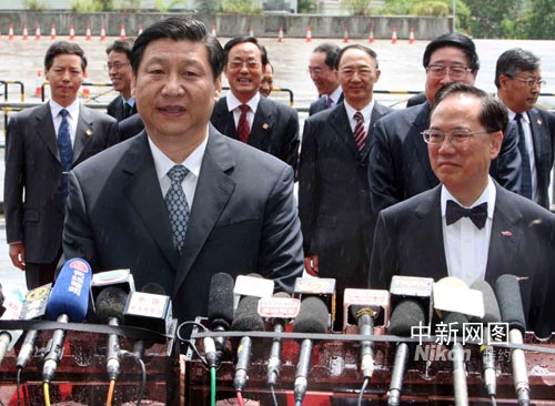 國家副主席習近平6日上午經(jīng)落馬洲抵港后發(fā)表簡短講話。中新社記者 任海霞 攝