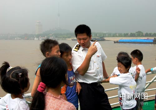 武漢市部分中小學20余名師生登上剛剛投入使用的內(nèi)河最先進巡航救助船——長江海事2號,饒有興致地聽著武漢海事局現(xiàn)場執(zhí)法人員講解海洋知識和長江航運發(fā)展史。武漢海事局青年志愿者在漢口江灘分別向過往市民分發(fā)“航海日”宣傳資料100余份。