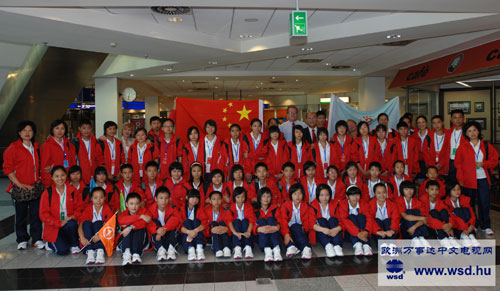 記者在機(jī)場(chǎng)暫短的時(shí)間里采訪到災(zāi)區(qū)青少年代表團(tuán)領(lǐng)隊(duì)、教育部參贊孫玲女士,她介紹了這次來(lái)匈的災(zāi)區(qū)孩子情況,他們都是成都地區(qū)下屬受災(zāi)最嚴(yán)重三個(gè)市中的都江堰市與彭州市的孩子,地震孤兒是父母雙亡,沒(méi)有親屬收養(yǎng)的孩子,這些孩子已先到俄羅斯療養(yǎng),我們這個(gè)團(tuán)的孩子是失去親人,親屬受傷或死亡成為單親家庭的孩子,是受災(zāi)地區(qū)較重的孩子,他們?cè)诘卣鹬斜憩F(xiàn)的非常勇敢、頑強(qiáng),他們家中的住房在地震中震垮了,所有孩子的學(xué)校在地震中倒塌了,他們住在臨時(shí)住房中,也在臨時(shí)房子中上學(xué)。孩子年齡最小的13歲最大的16歲,所有孩子都會(huì)說(shuō)四川話,記者也是半個(gè)四川人,記者用四川話向孩子們問(wèn)好!所有孩子用四川話回答,現(xiàn)場(chǎng)氣氛非常融洽,一下拉近了與孩子的距離。