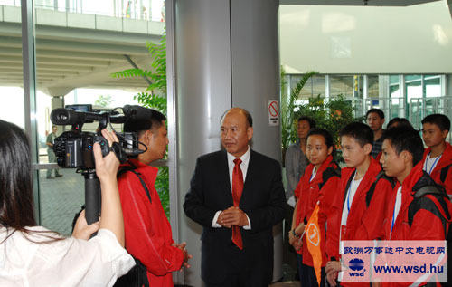 到機(jī)場(chǎng)迎接青少年代表團(tuán)的有中國(guó)駐匈牙利大使張春祥先生、政務(wù)參贊梁才德先生、政治處主任劉波先生、辦公室主任薛山先生等。匈牙利外交部亞太司副司長(zhǎng)古蒂先生、外交部國(guó)際合作司參贊福多爾女士及接待單位匈外交部下屬的國(guó)際發(fā)展局執(zhí)行局長(zhǎng)巴拉尼女士等。