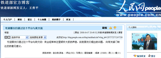今天下午,有網(wǎng)友在人民網(wǎng)鐵道部新聞發(fā)言人王勇平的博客里留言:“王部長(zhǎng),您好!據(jù)說(shuō),今年9月青藏鐵路將開(kāi)行豪華旅游列車。這種豪華旅游列車只對(duì)外國(guó)人開(kāi)放。這一消息屬實(shí)嗎?有沒(méi)有更多的情況提供?”,王勇平在第一時(shí)間回復(fù)了該網(wǎng)友。