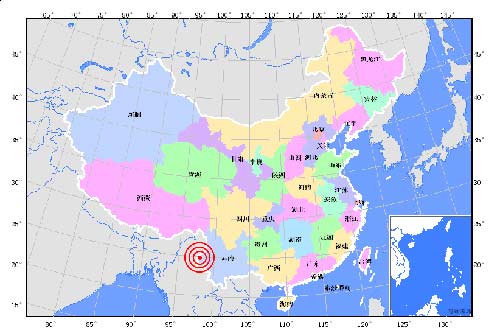 震源深度約10公里,震中距盈江縣城約45公里,距昆明市約500公里。