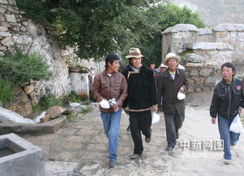 今天一早,記者參觀完哲蚌寺展佛下山路上,看到馬路兩邊賣特色小吃的攤位,均被打扮得花紅柳綠的藏族女孩子包圍著熱買,有的一家子還買了好幾包食物帶著上山。