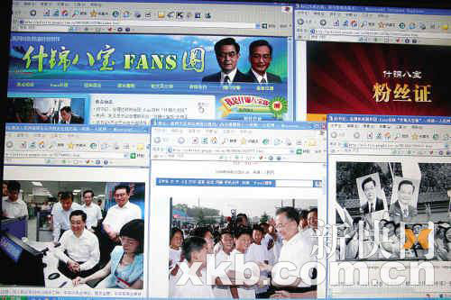 “祝賀您,成功加入‘什錦八寶粉絲圈’!弊蛉罩形,家住天河車陂的陳女士輕點鼠標(biāo),如愿以償獲得一本由人民網(wǎng)生成的胡錦濤和溫家寶的注冊粉絲證!翱偹阏业浇M織了!”在汶川地震后被總書記和總理機(jī)場“會師”照片深深感動的陳女士,像追星一樣在網(wǎng)絡(luò)上搜尋著“濤哥”和“寶寶”的消息。后來她發(fā)現(xiàn),網(wǎng)上和她懷著一樣興趣的人還真不少,一些人竟自發(fā)組成了后援粉絲團(tuán)。