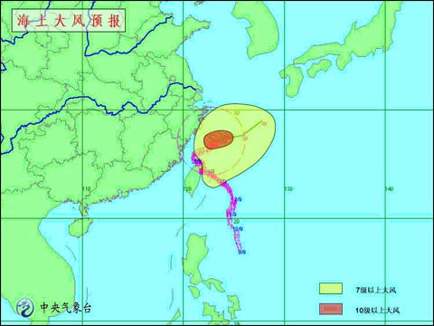 預計,今天白天到夜間,受強熱帶風暴“森拉克”影響,東海大部海域、臺灣以東洋面將有7-8級大風,“森拉克”中心經(jīng)過的附近海域的風力可達9-10級。