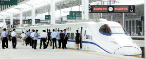 從9月24日起,每日將有4對京津城際高鐵往返于北京—塘沽兩地,全程用時56分鐘左右,票價分為三檔,特等座為118元,一等座為84元,二等座為70元。最早一班車10:45從北京南開往塘沽,最晚一班車19:59由塘沽開往北京南站。這四對高鐵列車將在天津站停靠,由天津站開往塘沽的票價分別為特等座19元,一等座15元,二等座12元。昨天,一列京津城際高速列車15:55由北京南站開往塘沽站,16:49準(zhǔn)點到達塘沽站,進行了運營前的全面試跑,以確保24日順利投入運營。