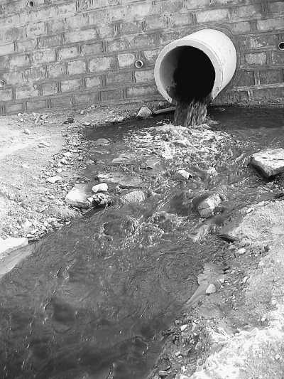 記者溯水而上,發(fā)現(xiàn)正在建設的陜煤集團神木檸條塔礦業(yè)有限公司,在龍泉村附近有一根直徑約80厘米的大塑料管伸向河道,管子里嘩嘩地流著一股有濃烈異味的黑水(見圖②),從正在打的礦井未經(jīng)處理就排到河道,與上游流下來的水匯合時有一條明顯的線,可謂涇渭分明。