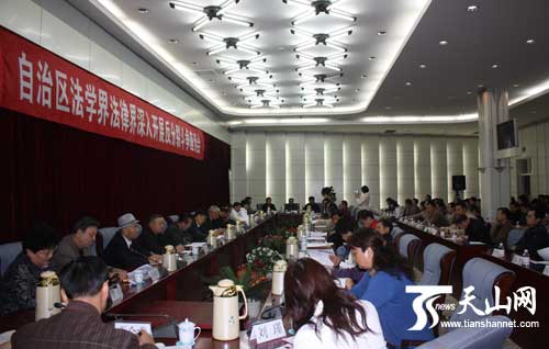 9月23日上午,(新疆)自治區(qū)法學界法律界在烏魯木齊召開了深入開展反分裂斗爭座談會,近百名業(yè)內(nèi)代表參加。