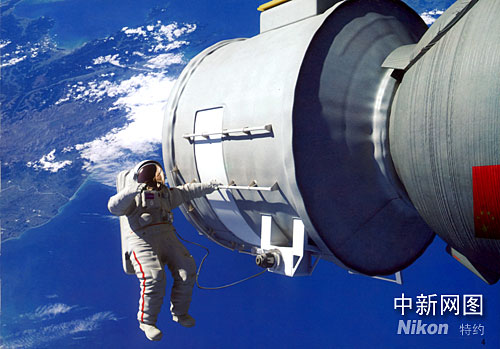 翟志剛身上所穿的中國自行研制的第一套“飛天”艙外航天服,也首次在茫茫太空中“亮相”。