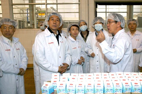 王勇一行首先來到位于北京密云縣工業(yè)開發(fā)區(qū)的內(nèi)蒙古伊利實業(yè)集團(tuán)股份有限公司北京乳品廠,察看企業(yè)原料奶收購、企業(yè)實驗室、生產(chǎn)下線環(huán)節(jié)、企業(yè)成品庫等環(huán)節(jié)。在該公司生產(chǎn)車間,王勇一邊查看生產(chǎn)線,一邊向公司負(fù)責(zé)人詢問產(chǎn)品的原料供應(yīng)、質(zhì)量檢測項目和工藝流程等情況。當(dāng)了解到每批產(chǎn)品都要經(jīng)過企業(yè)自檢、質(zhì)檢部門的抽檢和國家食品質(zhì)量安全監(jiān)督檢驗中心的檢驗合格后才出廠銷售,王勇露出了滿意的笑容。他向企業(yè)負(fù)責(zé)人叮囑,產(chǎn)品質(zhì)量是生產(chǎn)、制造出來的,而不是檢驗出來的,企業(yè)是產(chǎn)品質(zhì)量安全的責(zé)任主體,一定要加強(qiáng)責(zé)任意識和誠信意識,加強(qiáng)質(zhì)量監(jiān)管和嚴(yán)格自律, 在生產(chǎn)加工各個環(huán)節(jié)都要落實安全措施,一環(huán)扣一環(huán),不能有一絲一毫的疏漏。公司負(fù)責(zé)人表示,伊利公司將嚴(yán)格按照相關(guān)的標(biāo)準(zhǔn)要求,生產(chǎn)出更多更好的產(chǎn)品。公司已采取了“三清理”的措施,即全面清理市場上的產(chǎn)品、全面清理庫存的產(chǎn)品、全面清理原輔材料,對不合格品堅決予以銷毀,以確保市場上銷售的產(chǎn)品都是合格的。