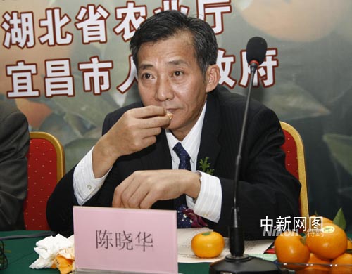 農(nóng)業(yè)部副部長(zhǎng)陳曉華第一時(shí)間現(xiàn)身宜昌柑橘產(chǎn)銷(xiāo)對(duì)接會(huì),眾目之下有滋有味地品嘗起擺放在面前的柑橘,引得現(xiàn)場(chǎng)一百多名經(jīng)銷(xiāo)商和民眾紛紛向工作人員“討要”柑橘品嘗。