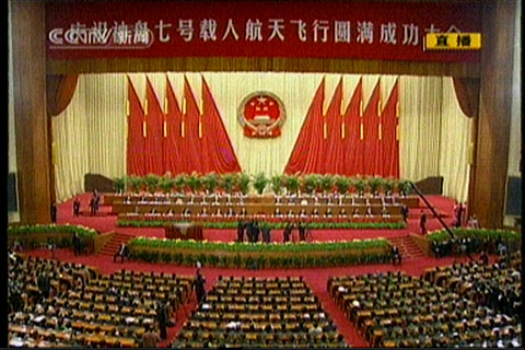 中新網(wǎng)11月7日電 慶祝神舟七號(hào)載人航天飛行圓滿成功大會(huì)今天上午10點(diǎn)在人民大會(huì)堂召開。