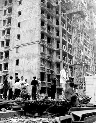 就是從這棟在建大樓升降機(jī)的頂部,12名工人一墜而下。