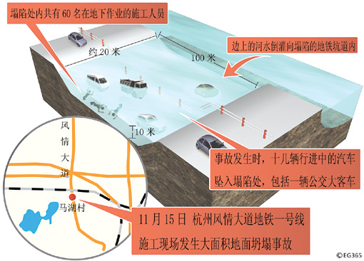 截至16日中午11時30分,浙江省杭州市風情大道地鐵一號線施工現(xiàn)場塌陷事故已造成3名施工人員死亡,17人失蹤,入院救治19人。