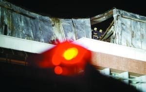 昨晚10時(shí)40分許,食品樓外已被拉起兩百多米的警戒線,大批保安守在四周維持秩序。此時(shí),十余消防車陸續(xù)趕到參與滅火。頓時(shí),水柱如噴泉般不停落下。借助照明車的燈光,可見(jiàn)實(shí)驗(yàn)室外部大面積的鐵皮發(fā)生了變形,并被熏黑,室內(nèi)則是漆黑一片。