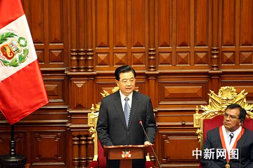 中國國家主席胡錦濤二十日在秘魯國會發(fā)表重要演講。中新社記者 齊彬攝