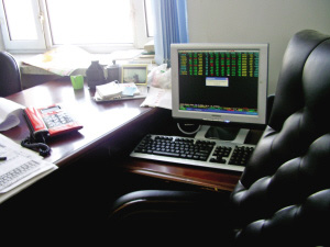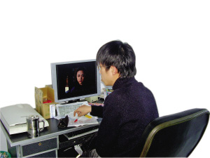 11時15分,未到午休時間,部分工作人員已經(jīng)穿好棉衣,相互招呼著準備出去吃飯。在二樓的走廊里,“滴滴……”一連串QQ傳遞信息的聲音傳來,循著聲音記者來到了248辦公室外。透過虛掩的房門,記者看到一名30多歲的男子正專心地對著電腦忙碌著。