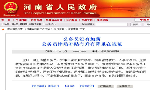河南省澄清公務(wù)員加薪傳聞 稱意在規(guī)范津貼發(fā)放