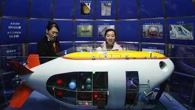 神七飛天,它入海,與“神七”飛船一樣,和諧號(hào)也是能容納3個(gè)人,一名操作員,兩名科學(xué)家。理論上,其從海面下潛至7000米深度要花掉5小時(shí)。作為重要特征,前端裝有兩只機(jī)械手,可以抓取75公斤的重量。