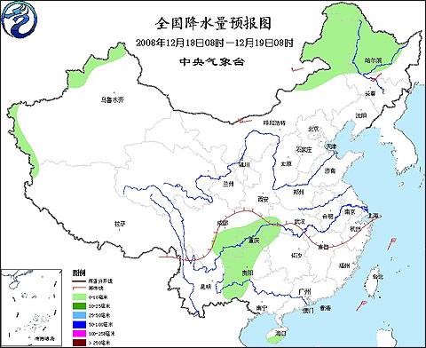 2008年12月18日8時—12月19日8時全國降水量預(yù)報圖