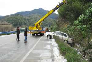 當(dāng)記者到現(xiàn)場(chǎng)時(shí),交警正在緊張地指揮吊車對(duì)滑到路基外的轎車進(jìn)行施救。“已經(jīng)有4輛車子沖出路基了。”一轎車司機(jī)回憶,當(dāng)時(shí)他從瞻岐往寧波市區(qū)方向開(kāi),剛好下坡,到了彎道,他感覺(jué)車輪打滑,下意識(shí)一踩剎車,車子就失控滑向?qū)ο蜍嚨,甩?80度后,車尾滑出路基才停了下來(lái)。就在他下車報(bào)警沒(méi)多久,又有一輛車步他后塵,滑出了路基。