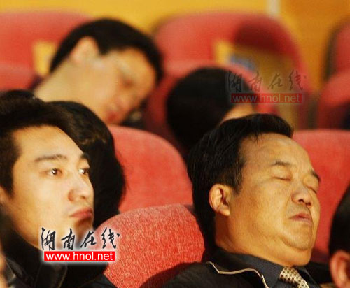 臺(tái)上報(bào)告不斷,臺(tái)下酣睡一片。