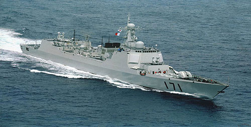 171 ?谔(hào),052C型導(dǎo)彈驅(qū)逐艦,2003年10月23日在江南造船廠下水,是中國海軍第一代具備相控陣?yán)走_(dá)、垂直發(fā)射系統(tǒng)的防空型導(dǎo)彈驅(qū)逐艦,被譽(yù)為“中華神盾”。