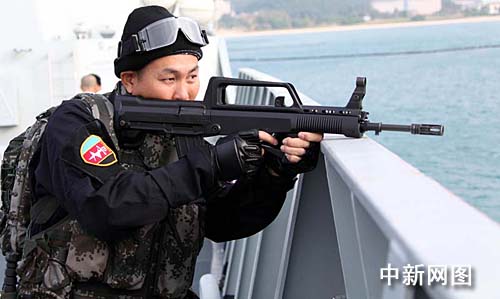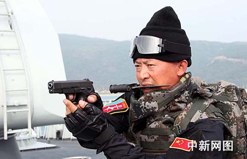 中新網(wǎng)“?凇迸12月28日電(記者 孫自法)特戰(zhàn)隊(duì)員出征前在“海口”號(hào)導(dǎo)彈驅(qū)逐艦上進(jìn)行輕武器演練。