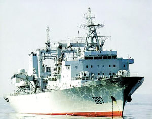“微山湖”號綜合補給艦,是我國自行設計建造的大型補給艦,排水量近3萬噸,可同時對3艘艦艇和1架直升機進行補給,可自行攜帶1架直升機。該艦先后圓滿完成出訪巴基斯坦、印度、泰國、俄羅斯、英國、西班牙、法國、日本等艦艇伴隨保障任務以及遠航訓練和聯(lián)合軍演,目前已安全航行近10萬海里。