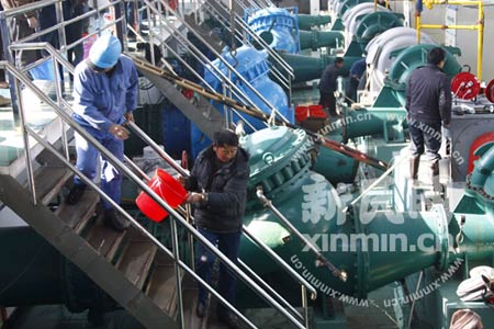 昨晚11點,搶修好的3臺泵房設(shè)備從閔行電機廠運回至松江第二水廠。11點35分,第一臺設(shè)備安裝調(diào)試完畢;11點40分,開始恢復(fù)向受影響的城區(qū)居民供水。到今天早上,松江第二水廠供水能力已恢復(fù)到正常水平。(薛驍翔)