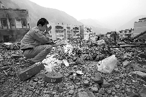 臘月二十三到年三十,是北川傳統(tǒng)的祭拜親人的日子,韓貴鈞介紹,為了滿足災民希望到縣城祭拜親人的要求,他們決定北川縣城向當地居民開放,但必須在規(guī)定的道路上進行。有些危險區(qū)域,有武警把守和監(jiān)督。