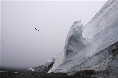 抵達(dá)柯林斯冰帽后,南極科考專家劉小漢稱,從冰緣沉積物的裸露可看出冰帽邊緣在退縮。冰帽表面已出現(xiàn)許多天藍(lán)色的融水潭,大量的水沿著冰面流向大海。不過(guò),當(dāng)天因?yàn)殪F大,不能看清全部冰緣消減的情況。